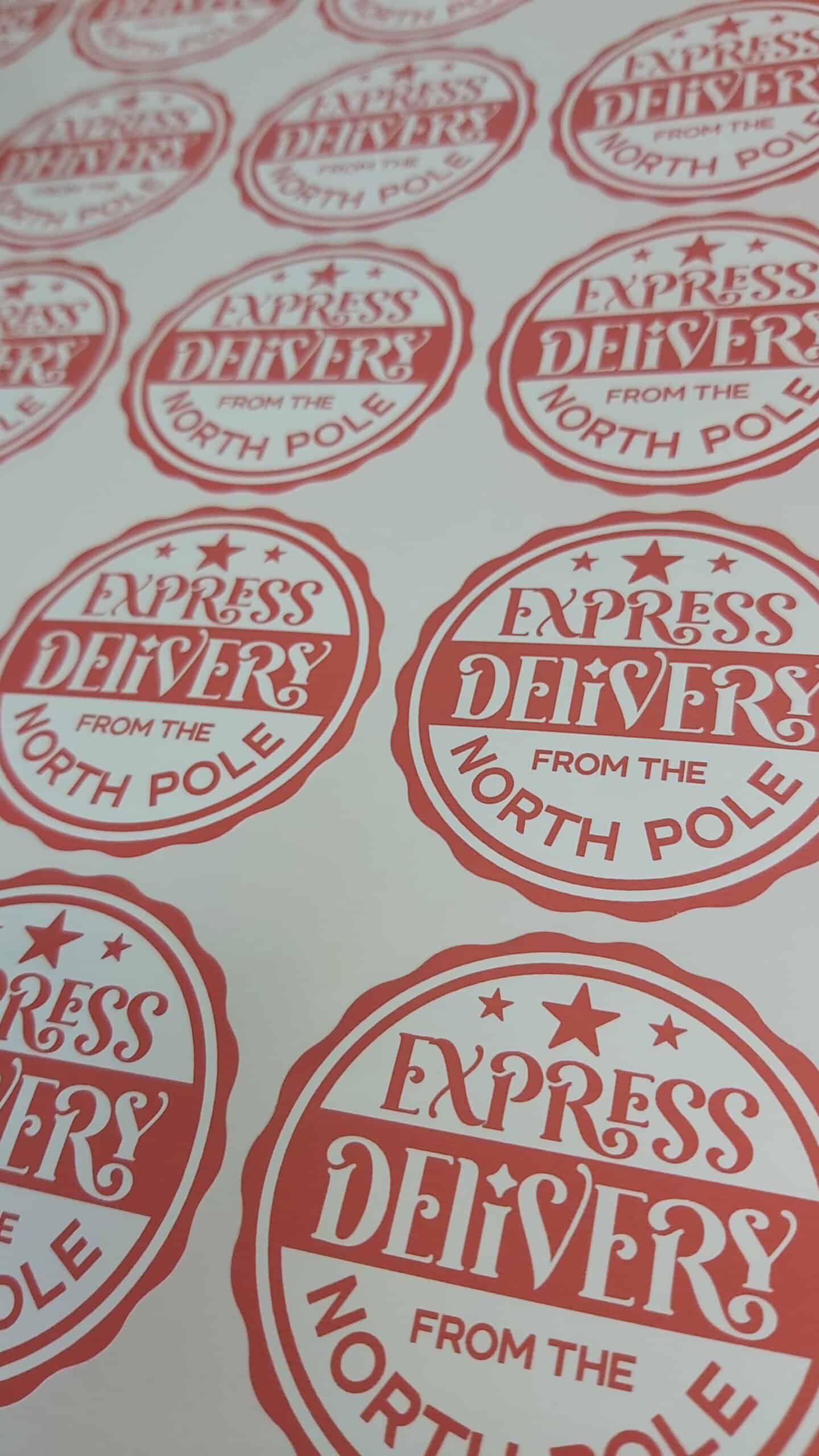 Izrada tiskanih Božićnih naljepnica s natpisom “Delivery Express” – Dodajte čaroliju blagdanske sezone svojim dostavama! Naše Božićne naljepnice pružaju pravu dozu blagdanske radosti i brzinu isporuke. Vaši paketi nikada nisu stigli brže! 🎄