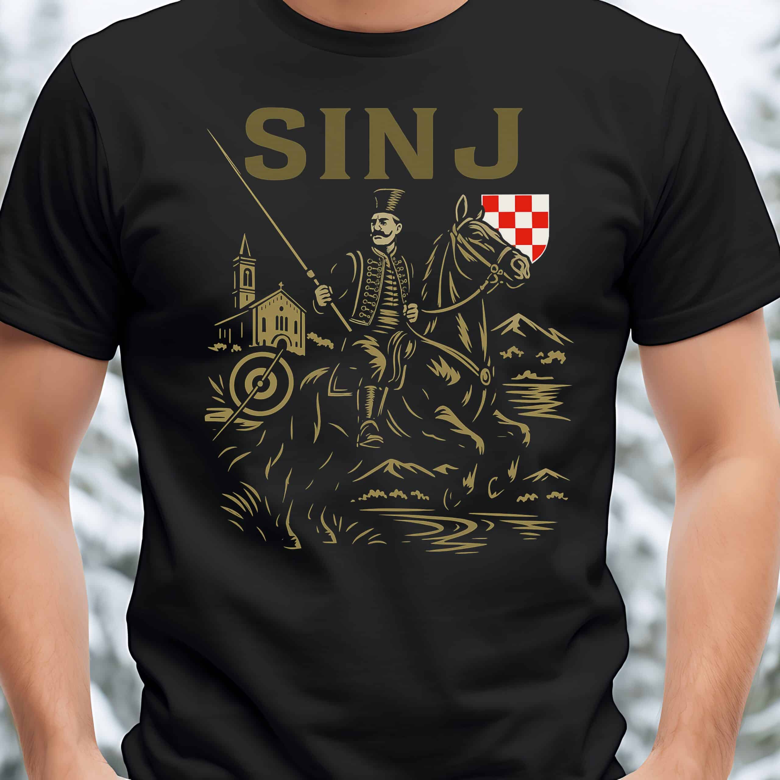 Majica s natpisom “SINJ” savršen je izbor za one koji vole misteriozne i intrigantne poruke. Klasične crne boje, ova majica lako se kombinira s bilo kojim stilom odijevanja.